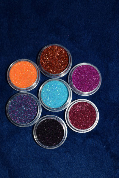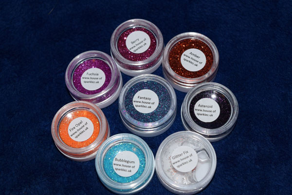 I bought 5 different shades of the fine loose glitter originally; Asteroid, Bubblegum, Fire Opal, Berry and Fuchsia. I’m really impressed with the quality of the glitter, it is very fine, has a high shine and are so vibrant in colour. Each colour is distinctive even amongst similar shades such as Berry and Fuchsia and I love that so many shades are available.