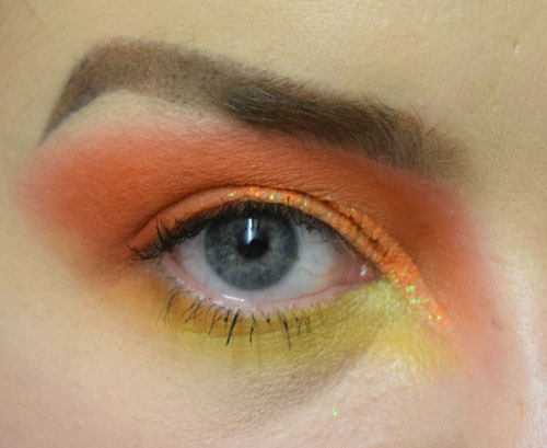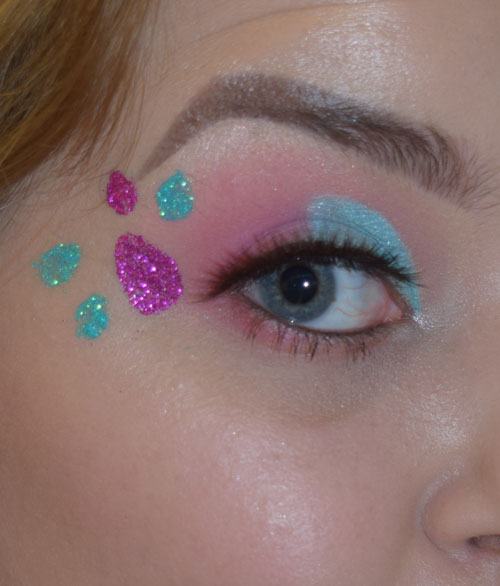 To apply I use a fine detail face painting brush to ensure that I keep the glitter out of my eyes. It’s also a great tool for adding detail to your cut crease whether you’re using glitter or not.