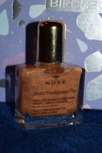My final product from BirchBox UK is the Nuxe Huile Prodigieuse OR Multi-Use Dry Oil Shimmer. It has a beautiful gold shine to it and adds a gorgeous glow to the skin. Although it felt quite oily on the fingers, when applied to the skin the oiliness disappears leaving behind the shimmer.