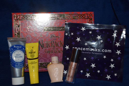 So I know I said I was going to cancel this subscription but I always think the next box might be awesome so I haven’t yet. The months box design is in collaboration with Disney for their new film The Nutcracker and the Four Realms. This box was shipped a little later than usual but I have a feeling that it is because of the collaboration. It arrived within a few days and everything was well protected as usual.