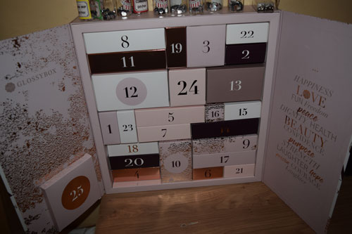 This was pretty pricey for an advent calendar but it did claim some pretty impressive brands (Nars, Huda etc). Subscribers to GlossyBox could get this for £75 while non subscribers had to pay the full £99. It did claim that there was over £300 worth of products in this and previous experience with them has shown that this was probably a good claim. I pre-ordered this calendar in October and it was delivered in early November which I didn’t expect. The package was heavier than I expected and it was pretty big too.