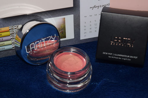 The final product in the March box was the Laritzy Cosmetics Dew Pot in the shade Utopia. In the pot this looks like it has a pink undertone with a gold shimmer, however on the skin you don’t see the pink hue at all. In fact, you can barely see the gold shimmer unless you put loads on which is such a shame as in the pot it looks amazing. This retails for £15.30.