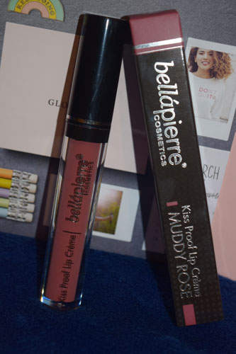 The third product in this months box was the Bellapierre kiss proof lip creme in the shade Muddy Rose. It looks like there are 4 different shades that you may receive in this box. Muddy rose is a pink toned neutral shade that will work with any eye look. The applicator is really thin so you can get a good line around the lips. The formula is long lasting but not too drying so it’s perfect for long days.