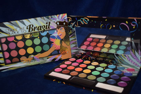 The palette comes with an outer cardboard sleeve that has the same design as the palette. All palette information including ingredients can be found on the back of both so you don’t need to keep the outer sleeve. I love the design on the palette, it brings the theme of rio to life. The packaging on the palette seems sturdy enough and the lid is magnetic meaning it will stay closed. There is also a mirror in the lid that is protected.