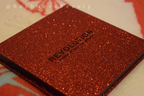 The palette comes in an outer plastic sleeve which I really don’t like. I prefer a cardboard sleeve so it can at least be recycled. You don’t need to keep the sleeves so why make it plastic? The palette itself is a glittery red although I haven’t noticed any paricles falling off.