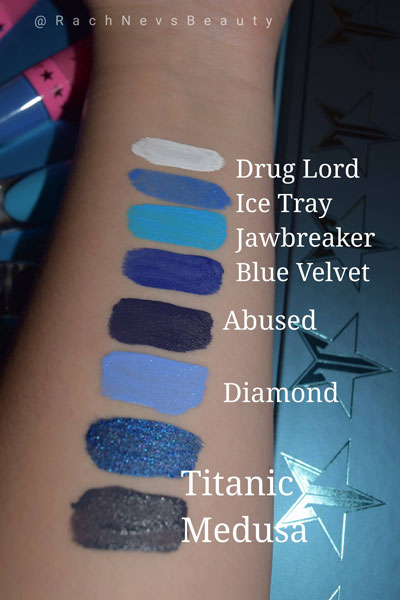 As I mentioned above you get 8 shades in this bundle. 2 of the shades (Ice Tray and Titanic) are exclusive to this bundle but the rest are available to buy full size. It was actually Titanic that attracted me to this bundle. As well as these shades, you also get Drug Lord, Jawbreaker, Blue Velvet, Abused, Diamond and Medusa.