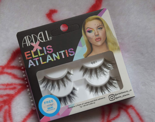 The packaging is fairly typical for lashes from Ardell Lashes. The usual plain eyelash holder with a cover in a cardboard sleeve but there is a great picture of Ellis on the front. There is a tube of Duo eyelash glue included with the lashes.
