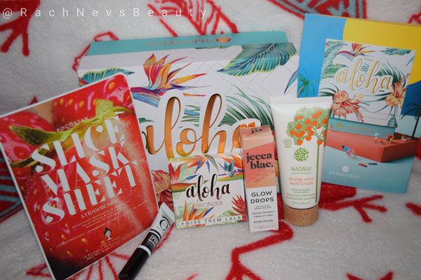 This month, we have a summer themed edition with the Aloha box. This month we have 4 full sized products and a deluxe mini to help you get your perfect sun kissed summer looks.