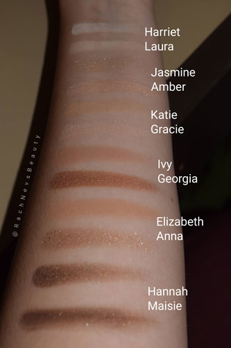 When doing the swatches, the shadows felt a little chalky but swiped pretty well. Most of the shades did need a double swipe to show the pigment better on my skin. For me, it’s all just too light and is clearly a nude palette for really pale skin. I’m not sure how these will work for those with dark complexions in all honesty. The shimmers performed better than the mattes with the exception of Maisie.