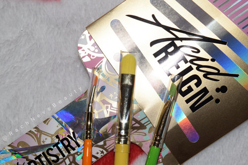 The Acid Reign Brush Trio have been designed in collaboration with mmmMitchell and can be purchased from the P.Louise website (see here). The three brushes retail for £23 and are only available as the set. I was lucky enough to grab these brushes along with an Acid Reign paint for £18 so always keep an eye on the P.Louise socials and website to snap up amazing deals like this.