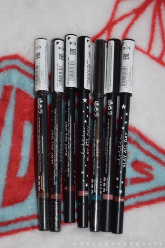 The liners are really creamy and pigmented with minimal bleeding. For the most part they apply smooth but some do need warming up to glide on. They last for hours and I didn’t notice them drying out my lips. Some of them are a little bit soft and pressure just makes them break. I’m not sure whether that’s down to the formula of certain shades or whether they have gotten warm at some point. The liners also work well with other brands of lipsticks.