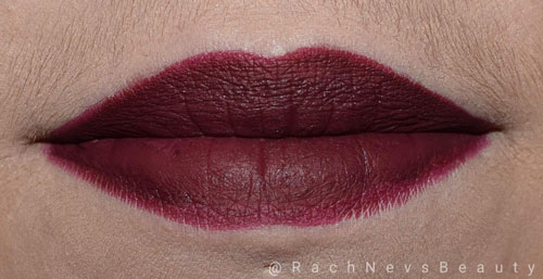 The packaging of both products is the industry standard. Lip liner in a pencil, liquid lipstick in a tube with an applicator. The liner looks to be retractable but it’s not although the website does say you can sharpen it. I actually don’t like this packaging and I’d much prefer just a standard pencil that I know I can sharped. The applicator of the lipstick is a little different to others. It’s not exactly a doe foot, it’s a little bit thinner and the point isn’t as defined. I actually prefer this applicator shape but they don’t produce the neatest of edges.