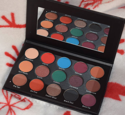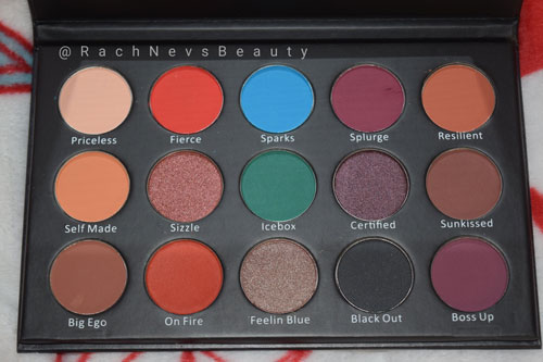 This is a 15 pan palette that contains 12 mattes and 3 shimmer shades. I think this is a good mix as I don’t think you need that many shimmers in a palette and these work perfectly with the mattes. I love the colour story; there’s a great collection of neutrals and smokey shades with some bright pops of colour. The pans are a nice size; not too small