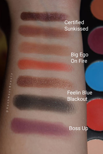 When doing the swatches, the majority of shades felt soft to touch and swiped well. The only shade I had an issue with was Fierce. It’s inpenetrable to anything, I think it’s been pressed too much. I can’t pick up any pigment on my finger and the shadow has taken on a sheen from rubbing at it. So gutted coz it looks such a pretty shade. The 3 shimmer shades felt silky and swatched so well. I particularly love the shade Feelin Blue because of its reflects.