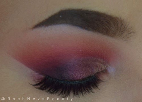 On the eye, all the shadows (apart from Fierce) apply easily and have good pigment. They are relatively easy to blend although purple based shades do need a little more work than the others. The shadows don’t lose much pigment when blending and none of them become patchy at any stage. The shimmers are gorgeous and apply well with a brush. There is some kickback in the pan for most of the matte shades and a small amount of fallout under the eye with the darker shades and shimmers.