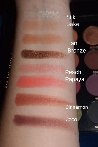 When doing the swatches, the shadows felt so creamy and soft. They all swiped easily and had amazing pigment with only 1 layer. I think I had to go over the shade Bake 2 or 3 times for it to show against my skin but that’s it. The shimmers only needed one layer to produce great pigment and shine. The shade Saucy did feel a little gritty to touch at first but I think that’s just the glitter particles on the top. It felt fine after that first swatch.