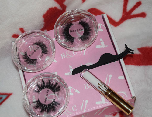 My full order arrived safe and sound, in packing peanuts and bubble wrap. The mystery box products come in a pink Bella and Co box with the items protected by paper confetti. Each pair of lashes are packaged in a fabulous hard, plastic case which I love. I’ve not seen anything similar to these for lashes, just the usual rectangle or circle holders.