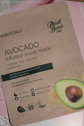 The penultimate product was the Beauty Pro Avocado Infused Sheet Mask. This retails for £4.95 which is pretty pricey for a mask but is enriched with superfoods. There is loads of serum in this mask and it left a lot on my skin that I had to wipe away. It did leave my skin feeling softer with no greasiness after.