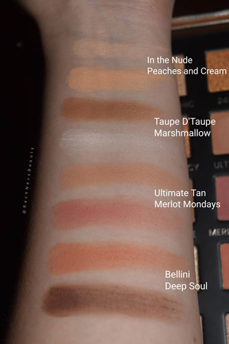 This palette contains 20 shades with a mixture of matte, shimmer and glitter shadows. There’s actually only 8 mattes in here with 10 shimmers and 2 glitters. It’s pretty unusual to have this ratio of mattes to shimmers but I don’t mind it too much with neutral palettes. I mean there’s only so many shades of brown but you can completely change a look depending on the shimmer.