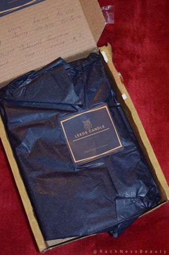The attention to detail was even more impressive for the wax melts which arrived in a separate box the week before. Carefully wrapped in blue tissue complete with stickers and stamps of the company logo, the box was full with stars and a few bars. The owner has even, painstakingly written a list of scents on the inside lid of the box which I am so grateful for. There was also a handwritten Leeds Candle Company card in each box saying thanks. It’s all of these extra touches that make ordering from small businesses the best.