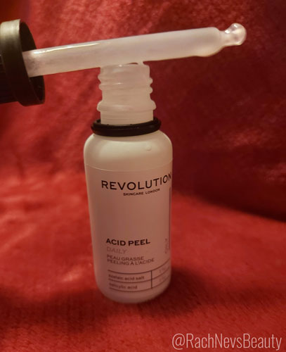 You can pick this up from the Revolution Beauty website (see here) and it retails for £10. You get ml of product in the bottle which is plenty. This is part of a full range of acid peels from Revolution Skincare for all skin types and needs. There is a gentle, daily use formula and an intense weekly formula available for all. I grabbed the daily use just because I need it. All of the peels are cruelty free and vegan.