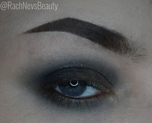 On the eye, the shadows work well. They aren’t the most pigmented in the world but they are easy to blend and build up. With a few layers you can build a deep colour although it certainly won’t be bright. You’re gonna get dark and sultry with a sparkle. The shimmers look so pretty and the white one is great as an inner corner highlight. As with the mattes, you need to build up some of the shimmer shades mostly for even coverage of the glitter particles. There was some kickback in the pan and fallout under the eye for the majority of shades.