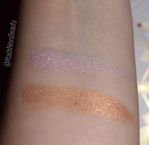 The three highlighters are soft and buttery to touch and are easy to apply with either a brush or your finger. Naturally a softer, more natural glow can be achieved with a brush but they are easy to build to a bright shine. They blend into the skin like a dream leaving you with a radiant glow. The shades are quite pigmented and do match the descriptors perfectly. The lilac is more pink with a golden shimmer but that just makes it more wearable as you can see from the swatches.