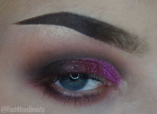 There has been some kickback in the pan for most of the shades although only the shimmers and darker mattes product fallout under the eye. Unfortunately the shimmers crease on the lid after a few hours of wear but it is easy to smooth back over. I also noticed some staining with the shades Claret, Queen and Royal but it was only slight for the two matte shades.