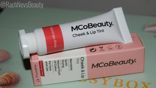 The third product in this months box was the Mco Beauty Cheek and Lip Tint in the shade Flamingo Pink. This retails for £12 and is surprisingly good. Not sure about it as a lip tint but on the cheeks it is fabulous. It can be used under or over foundation depending on your preference and you barely need any to get a nice colour. It’s pretty easy to blend and can be built up for a more intense colour.