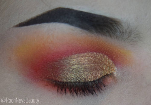 On the eye, the shadows perform quite well. The mattes definitely require a build and blend technique to get the best out of them. They are highly pigmented but can sometimes leave a visible line when packed on. They are fairly easy to blend when applied gently and are buildable to produce vibrant look. The shimmers are easy to apply with either a finger or brush and are so vibrant.