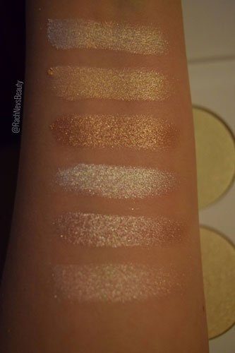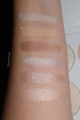 On the face, all of the shades look amazing and perform well. However, I’m not sure you can say this is great for all skin tones particularly those with darker complexions. The darkest shade wasn’t overly dark on my pale ass skin which isn’t a good sign. Either do better in one palette or bring out two because this one is definitely suited for light to medium complexions. In fact, the first shade on the bottom row is too light for me and has a pale cast when out of the light. All the shades are easy to apply and blend into the skin without drawing too much attention to skin texture. They can add a soft, gentle glow to your skin or can be built up for an intense shine. They are pigmented even when used lightly.