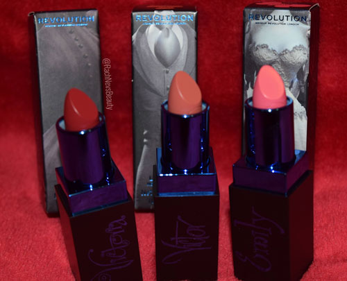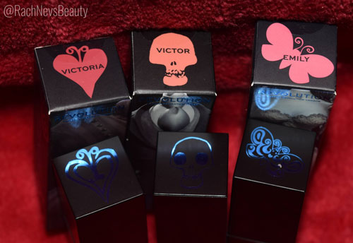Sorry for the Makeup Revolution overload but I’m not that sorry as its Halloween…and we have more Corpse Bride products for you. Three lipsticks were created as part of this collection and of course I grabbed all three for you. The shades are inspired by the three main characters: Victor, Emily and Victoria.