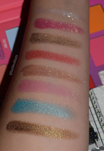 When doing the swatches, despite all the shades feeling soft, some of the mattes had a chalkiness to them and looked chunky. Some of the shades needed a few swipes to get a smooth, even swatch. They look to be really pigmented though, I didn’t need additional layers of product. The shimmers are soft and silky and swatched so smoothly. The duo chromes have a gorgeous colour shift to them. The reflects in the shimmers make them really eyecatching.