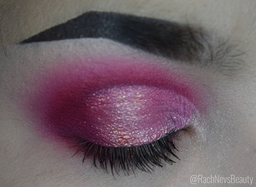 On the eye, the shadows are amazing with none of the issues I saw in the swatches. They are so easy to apply and blend evenly. They even retain a lot of their pigment during blending which isn’t often the case. The shade Mikai is the easiest red I’ve ever worked with and I’ve tried a lot. The shimmers apply evenly with both brush and finger. They blend together and with the matte shades fairly easily too.