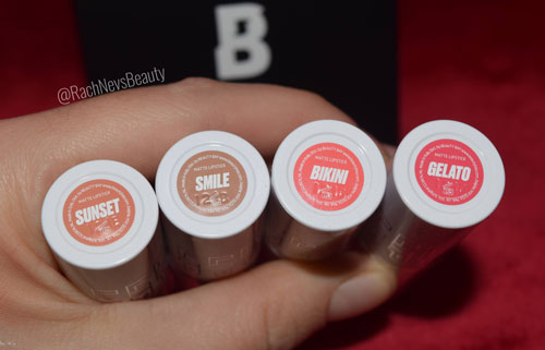 According to the website description, these have a highly pigmented and ultra-creamy matte formula that is long-lasting and comfortable to wear. The four shades are Smile (light brown nude), Sunset (pink, orange toned nude), Gelato (a warm, medium golden coral) and Bikini (warm apricot peach). The shades are perfect for summer day outings.