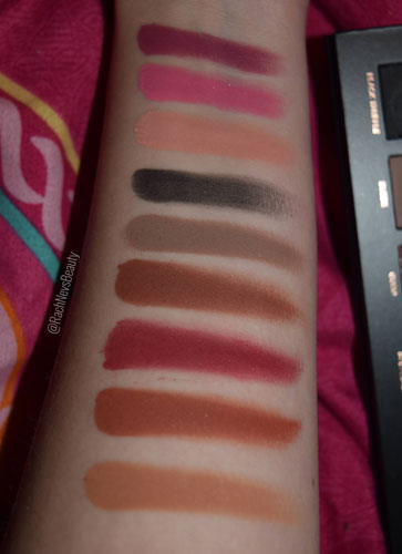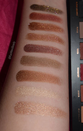 When doing the swatches, the shadows felt soft and buttery. The mattes had good pigment and swiped smoothly with one layer without any patchiness. The metallics are gorgeous. All are soft and creamy with great pigment and shine though some have different finishes. The shade Moondust has a pearlescent finish and is perfect for highlighting. Rose gold is a gorgeous duo chrome shade and Dubai has pink reflects in the gold.