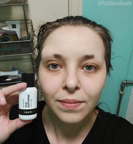 This has an almost gel like consistency. It’s not quite a liquid serum but it is runnier than a gel. It makes it a lot easier to get a small amount out of the bottle. It applies more like a liquid, easily dispersed around the face and absorbing into the skin within a minute leaving no residue. You don’t need to use much for good coverage so it should last a while.