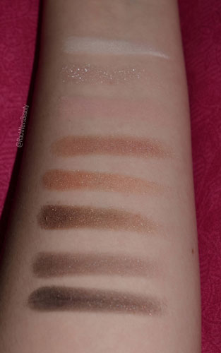 When doing the swatches, the shadows felt soft and really smooth. The lighter shades did need two layers to really show up but all of them look quite pigmented. The shades are definitely on the cooler side with no warm mattes in there. The shimmers look reasonably pigmented too and they swatched evenly. They do look quite subtle in shine though that doesn’t bother me in a natural palette.