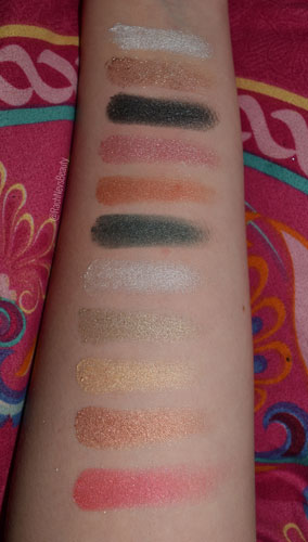 When doing the swatches, all of the shadows felt soft and silky. Some of the mattes did look a little patchy and uneven after the first layer but most evened up with a second one. The shimmers swatched smoothly without any patchiness even when only a single layer used.