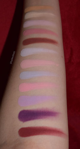 When doing the swatches, the shadows felt really soft and smooth. They swiped evenly with good pigment after a single layer though some of the lighter mattes did need a second layer to really show the pigment. The shimmers feel so silky and are full of pigment and reflect particles. They swiped evenly with one layer.