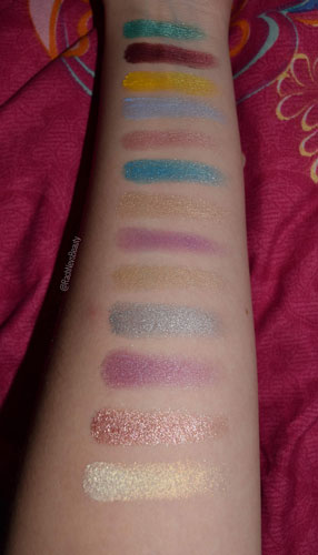When doing the swatches, the shadows felt soft and silky to touch. All of the mattes produced a smooth and even swipe but some of the less vibrant shades required 2 layers to really get the colours to pop. The shimmers felt so smooth and swiped evenly with good pigment.
