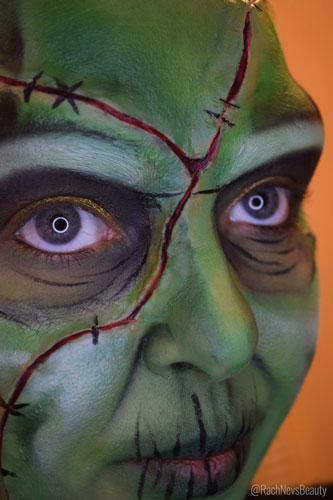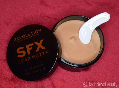 The Scar Putty is available to purchase from Makeup Revolution and Beauty Bay.The Scar Putty is surprisingly easy to work with particularly when compared to Ben Nye Scar Wax or Mehron Extra Flesh etc. It starts off fairly hard but becomes malleable quickly in the hands and blends into the skin easily. The putty is very sticky so no adhesive is needed but you’ll definitely need some vaseline for your hair, hands and tools so you can work with it. Although powdering it down stops it sticking to itself, the putty doesn’t set or harden so it remains flexible. I was surprised that it lasted for hours and didn’t move. It holds paint well too making it perfect for Halloween looks and it is easy to remove (see below).