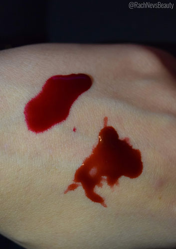 Of course, I picked up 2 different types of fake blood. The first one is Blood Jelly and is available at Makeup Revolution, Beauty Bay and Superdrug. This is perfect for creating clotted wounds due to the texture. Very much the consistency of a loosely set jelly. There’s some movement to it but it’s not free flowing and stays where you put it. It’s the more realistic looking out of the two bloods because of the consistency and also the colour. It’s a gorgeous deep red that only gets darker when gobs of blood are added.