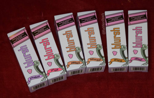 The packaging is really cute. Each collection comes with it’s own box design but the Blursh component remains the same. The Lonely Hearts collection comes in pale pink box with heart decals while the Mangoes one comes in an orange to green gradient box. All product information including the ingredients and shade name can be found on the back and top of the boxes. The Blursh component is very similar to other base products though they’re shorter and fatter than them. They have a neon, soft touch screw cap and a doe foot applicator that is really comfortable to hold. The components feel well made and secure with a good weight.