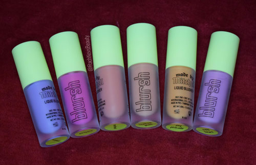 This bundle contains 6 shades of Blursh and a MF1 Cheek Stippler Brush. The one from the Where the Mangoes? collection is called Miami Beach. Only problem is that it is bright yellow. It really does not suit my skin tone so it was hard to review it fairly which is why I bought more. The Lonely Hearts Club collection features a selection of mostly soft, romantic shades though we do have one hot pink in the mix called Party Pink. The only shade not available to purchase individually is Primadonna which is a lilac shade. Finishing up the pink based shades is Cold Heart a cool, pale pink There’s also Teach Em Peach (a peach shade, duh), Snatchural a light rose tint and Apricot Hot a soft orange.