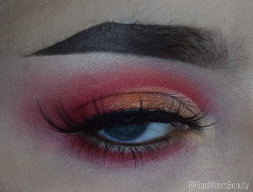 On the eye, the shadows are a mixed bag. The medium and dark blues were so hard to work with. They are just so patchy when layered or blended together. Disappointing because the colours are gorgeous and its one of the few gradient blends that can be achieved. The reddish browns and the oranges don’t have much differentiation in colour either and all end up looking the same. The bright orange is gorgeous though and pretty easy to work with. The shimmers are also pretty underwhelming. They look much better in the pan than they do on the eye but are still kind of pretty. Subtle but pretty. The 2 light golds are perfect for highlighting around the eyes and brow.
