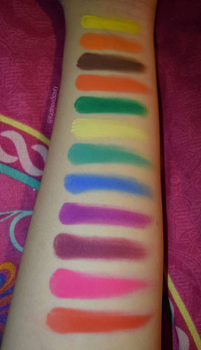 When doing the swatches, all the shades tried felt super soft and swiped smoothly. They are all highly pigmented and only needed one layer for an even swatch. Also, I barely touched any of the shades to produce these swatches. The shimmers are simply stunning. They feel like butter and sparkle like mad. They swipe smoothly and evenly with a good amount of reflective particles. Be warned some of the makeup looks below are a little crazy.