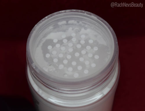 The packaging is a little different to the industry standard and bloody annoying as a mobile mua. There’s no outer box but the pot does come wrapped in sealed plastic. The powder comes in a tall pot rather than the squat ones usually used for loose powder. It has a deep screw cap that does feel secure for travelling and there’s a plastic sifter to control the powder. I really wish that there was a slider to cover the holes for additional control though. The diameter of the packaging makes it quite awkward to get at the powder without dispensing into something else. All product information including the ingredients can be found on the packaging.