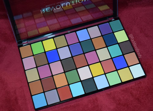 This is a 45 pan palette featuring a full variety of rainbow hues but only has matte shadows. The shade range is pretty amazing containing almost every colour and several shades of them too. You can pretty much see the gradient blends at a glance.