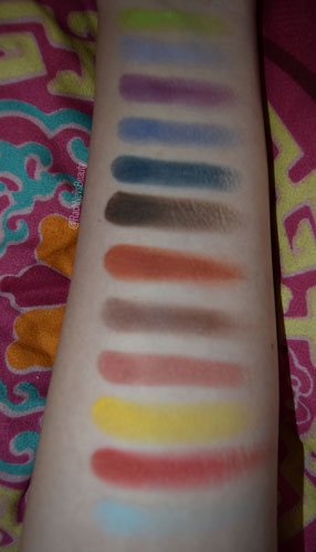 When doing the swatches, the shadows felt a little bit chalky but didn’t crumble when on the fingertip. They swiped fairly smoothly but some didn’t lay evenly. Some of the lighter and pastel shades required a couple of layers to show up. From the swatches, it seems like some shades are more pigmented than others.